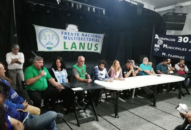 Junto a los principales gremios, se encontraban los representantes de Sadop, MTE, Custodios, Frente Multisectorial Lanús, SIndicato de Choferes, Frente Sindical para el Modelo Nacional, Agrupación Agustín Tosco, Movimiento Mayo. También participaron los concejales de Unidad Ciudadana, Héctor Montero, Jorge García, Mariano García y Natalia Gradaschi.