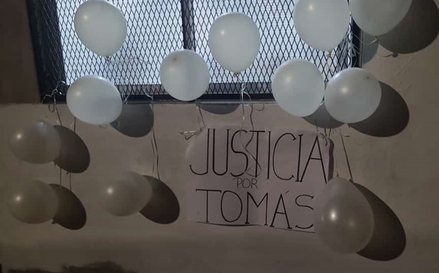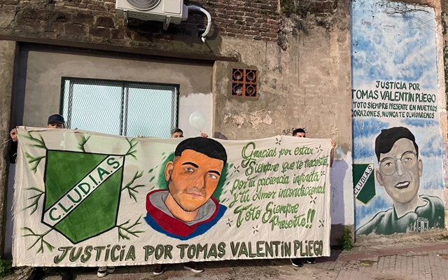 A partir de las 18, familiares y conocidos de Tomás Valentín Pliego se concentraron en Maipú y Arenales, en Banfield. De allí marcharon por las calles del barrio con pancartas y globos blancos hacia el club Cludias, situado en Rincón y Campos, donde hay un mural en homenaje al joven.