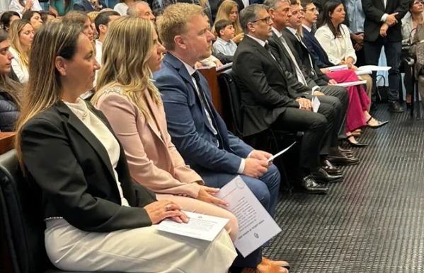 Los jueces que prestaban juramente estuvieron acompañados, también, por familiares, amigos, compañeros de trabajo, y autoridades locales y provinciales que colmaron la Sala de Juicios..