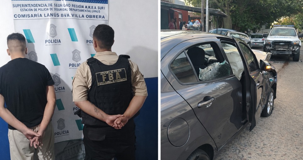 Un móvil policial logró ubicar el vehículo en la intersección de Juncal y Oyuela, en Lanús Este. donde los ocupantes de la camioneta colisionaron contra el patrullero en el que se desplazaban los efectivos.