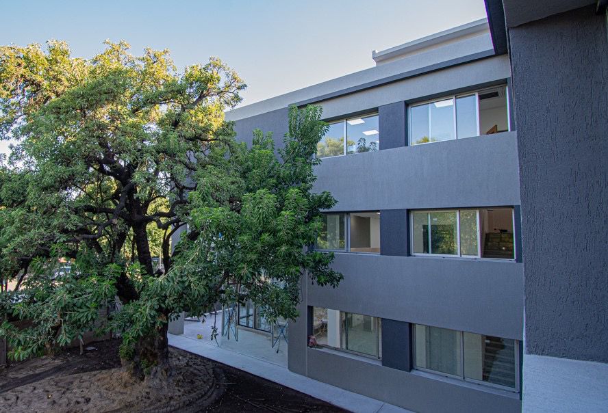 El edificio que cuenta con una planta baja, 1° y 2° piso, en una superficie total de 1.800 metros cuadrados (con 600 metros cuadrados cubiertos por planta), cuenta con diez aulas, tres laboratorios, un auditorio, una biblioteca y dos salas para docentes, además de espacios administrativos, áreas de servicios y núcleos sanitarios.