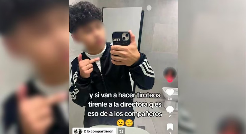 La investigación se inició luego de que se viralizara un posteo del estudiante con un mensaje intimidante. Según consta en la denuncia, el texto rezaba: “Si van a hacer tiroteos tírenle a la directora. ¿Qué es eso de a los compañeros?”. La difusión de la frase entre la comunidad educativa alertó a las autoridades del colegio, quienes radicaron la denuncia correspondiente.