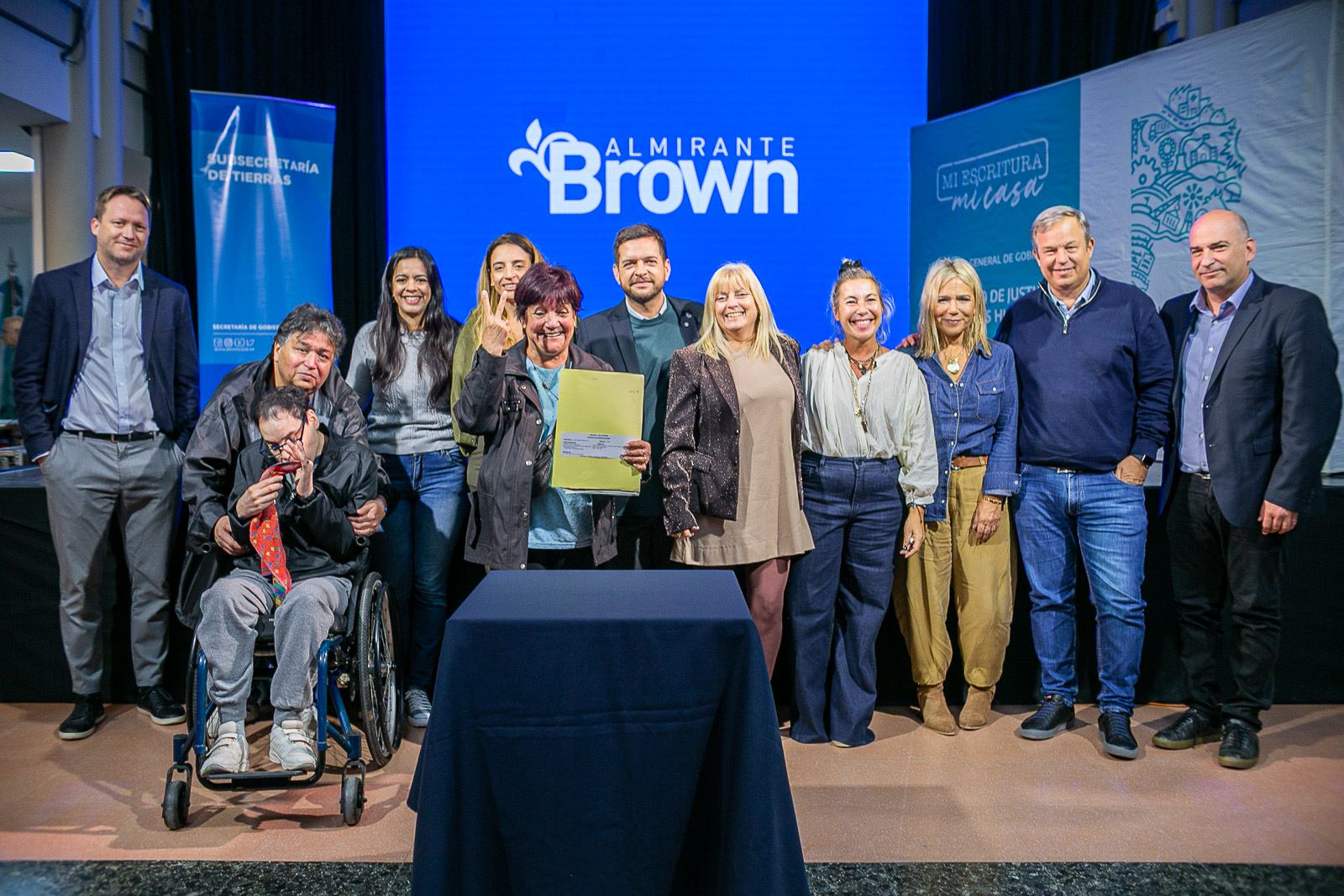 Durante un encuentro llevado a cabo en la Casa Municipal de la Cultura, Mariano Cascallares, el intendente interino de Almirante Brown, Juan Fabiani; la jefa de Gabinete, Paula Eichel, y el titular del Concejo Deliberante, Nicolás Jawtuschenko, acompañaron en la firma de su escritura a 184 familias de Ministro Rivadavia, San Francisco Solano, Malvinas Argentinas, San Francisco de Asís, Rafael Calzada, Burzaco, Mármol, San José y Claypole.
