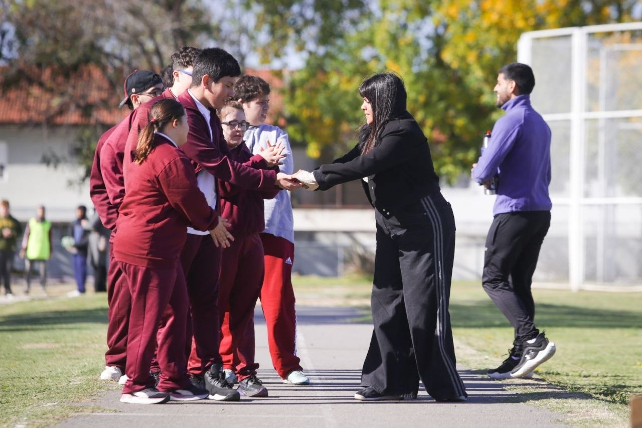 “Hoy lo importante es encontrarnos, compartir y divertirnos en cualquiera de las disciplinas donde participen. Darles la bienvenida a este polideportivo que siempre los va a recibir y agradecerles el trabajo a todos los profes y las dires, que hacen lo posible para que todos tengan esta oportunidad”, afirmó Eva frente a los alumnos, acompañada por el secretario de Deportes, Nicolás Mellino, y su par de Educación y Culturas, Evangelina Ramírez.