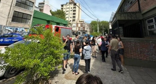 Si bien no se registraron heridos, un estudiante de segundo año presentó síntomas de aturdimiento y malestar por la exposición al humo, por lo que fue asistido en el lugar por personal de Emergencias 107.