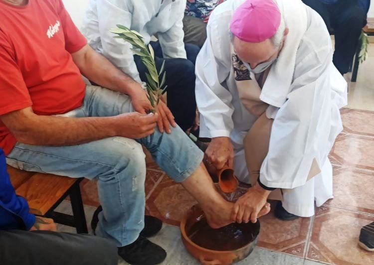 En el marco de la Semana Santa, el obispo de Lomas brindó también una misa en la Unidad N°1 del Complejo Penitenciario Federal de Ezeiza, donde llevó a cabo el rito del lavatorio de los pies a los encarcelados.